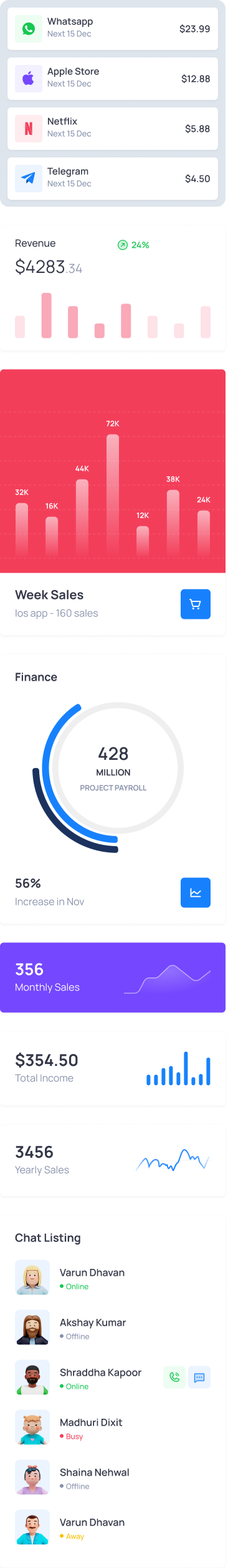 Ample Admin comes with light & dark color skins, well designed dashboards, applications and pages.